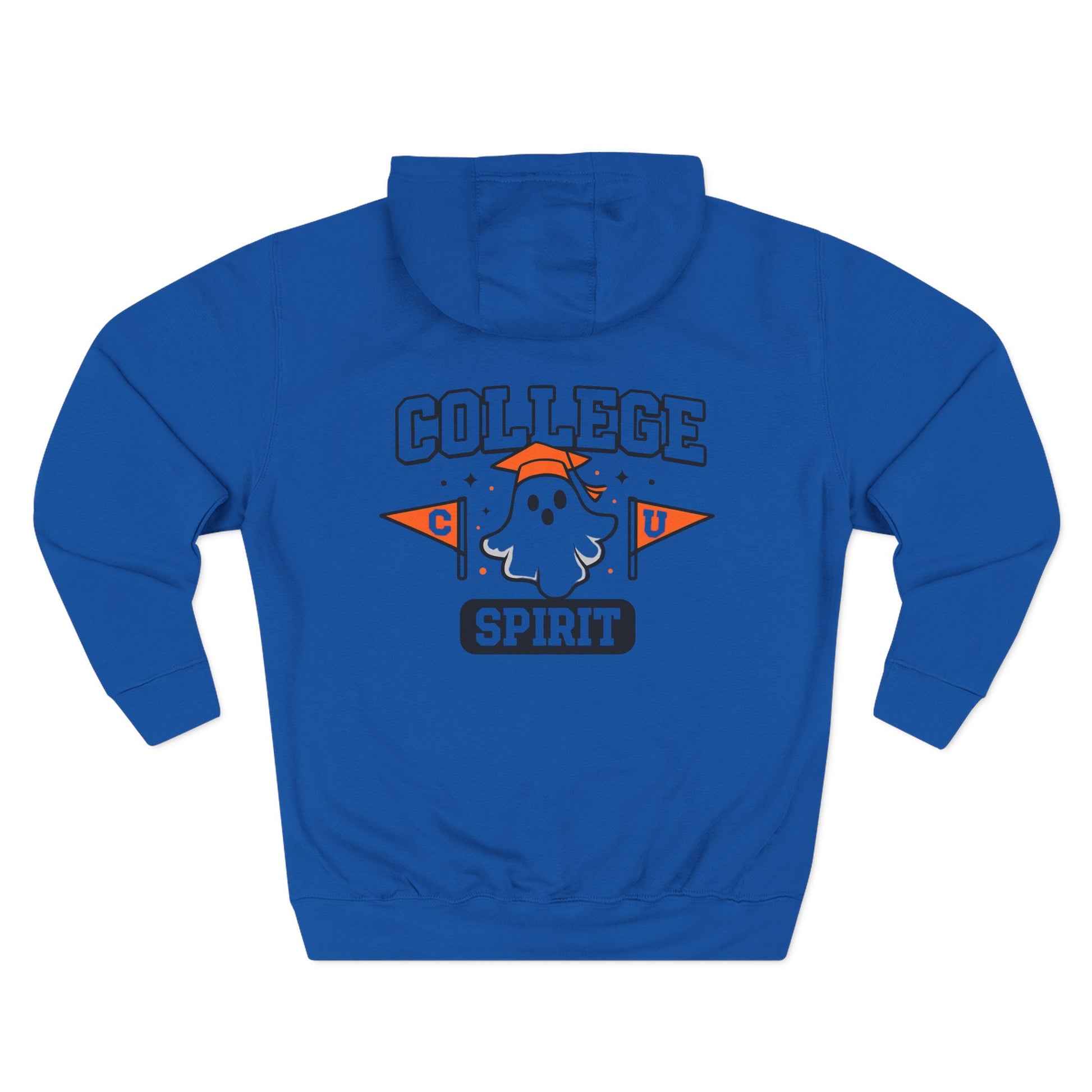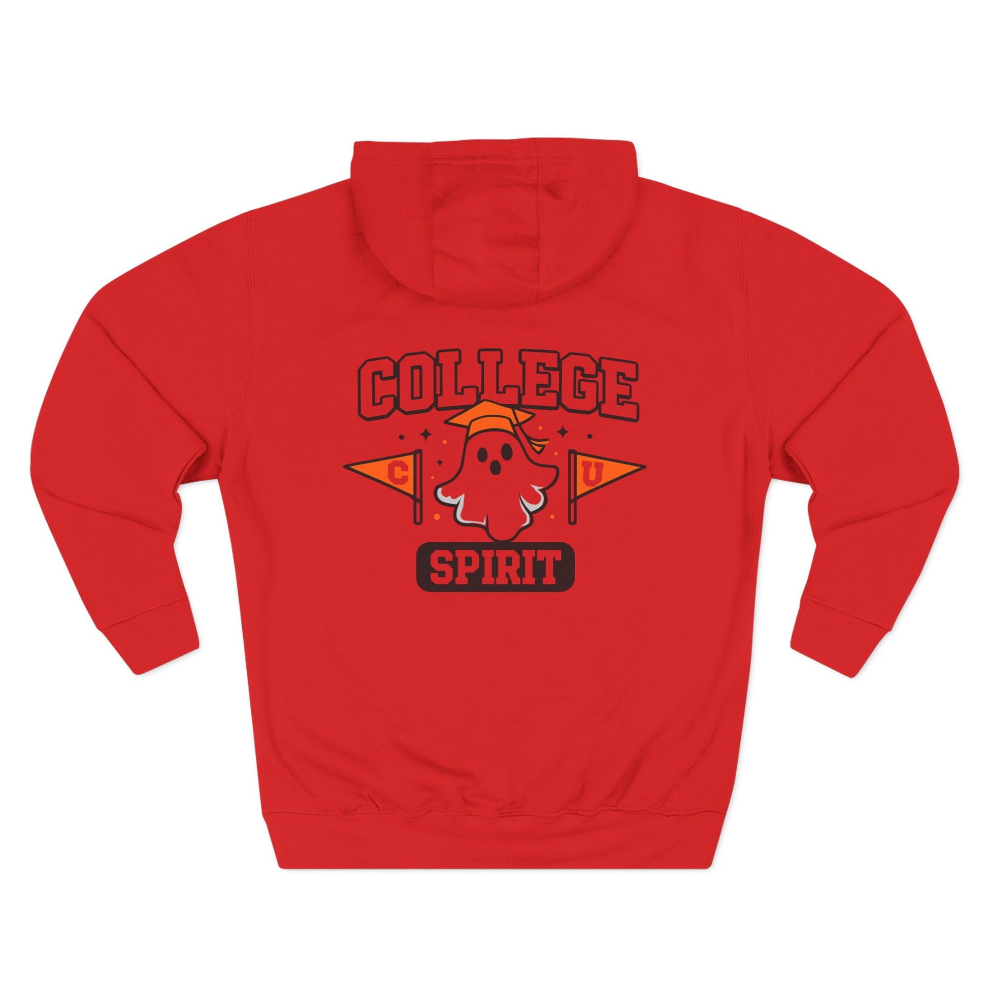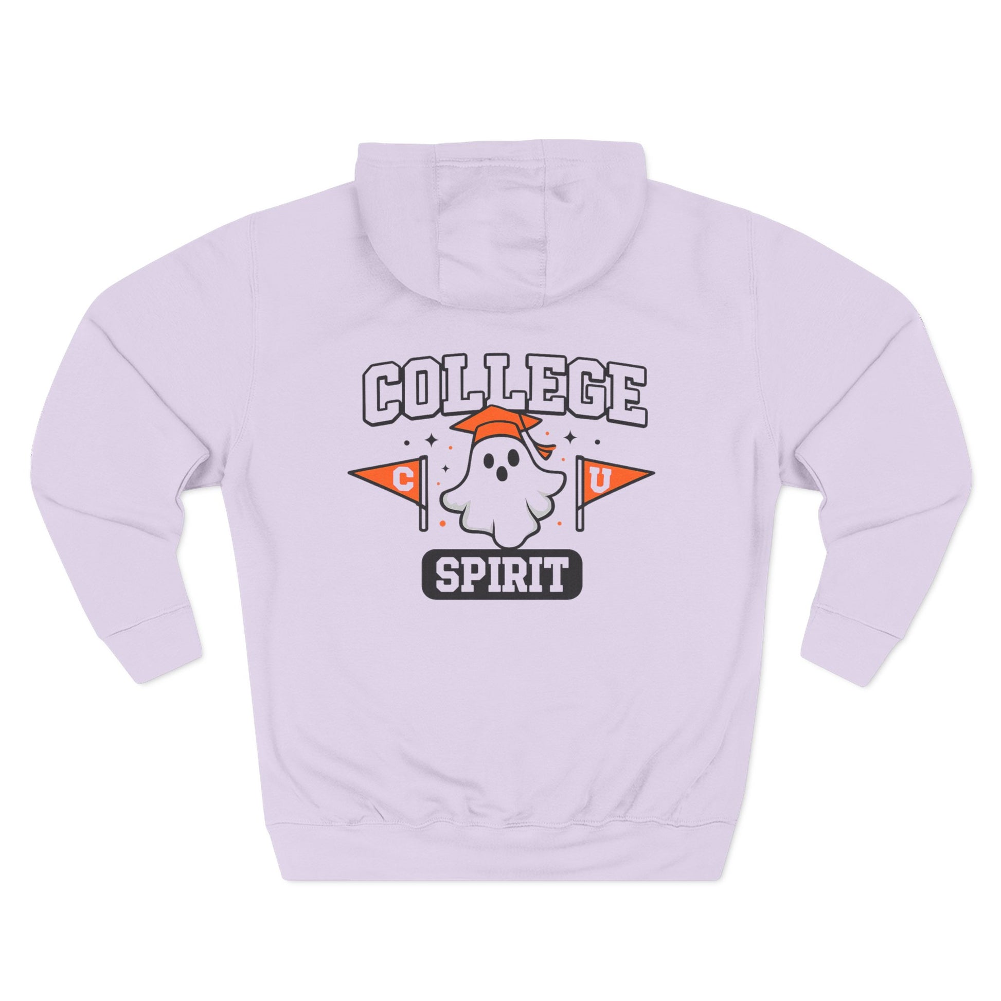 College Spirit Hoodie — Cute Ghost Mascot with Pennants