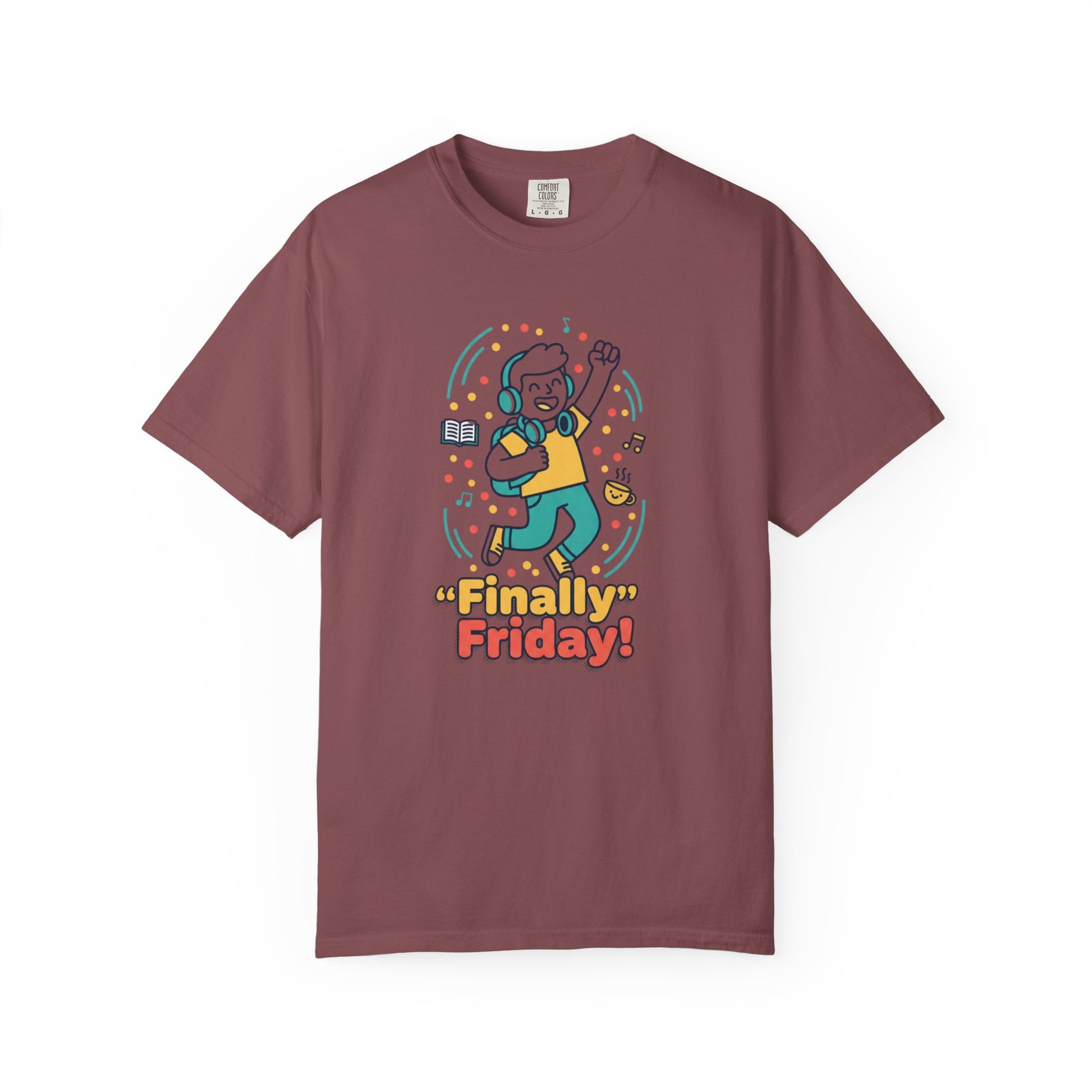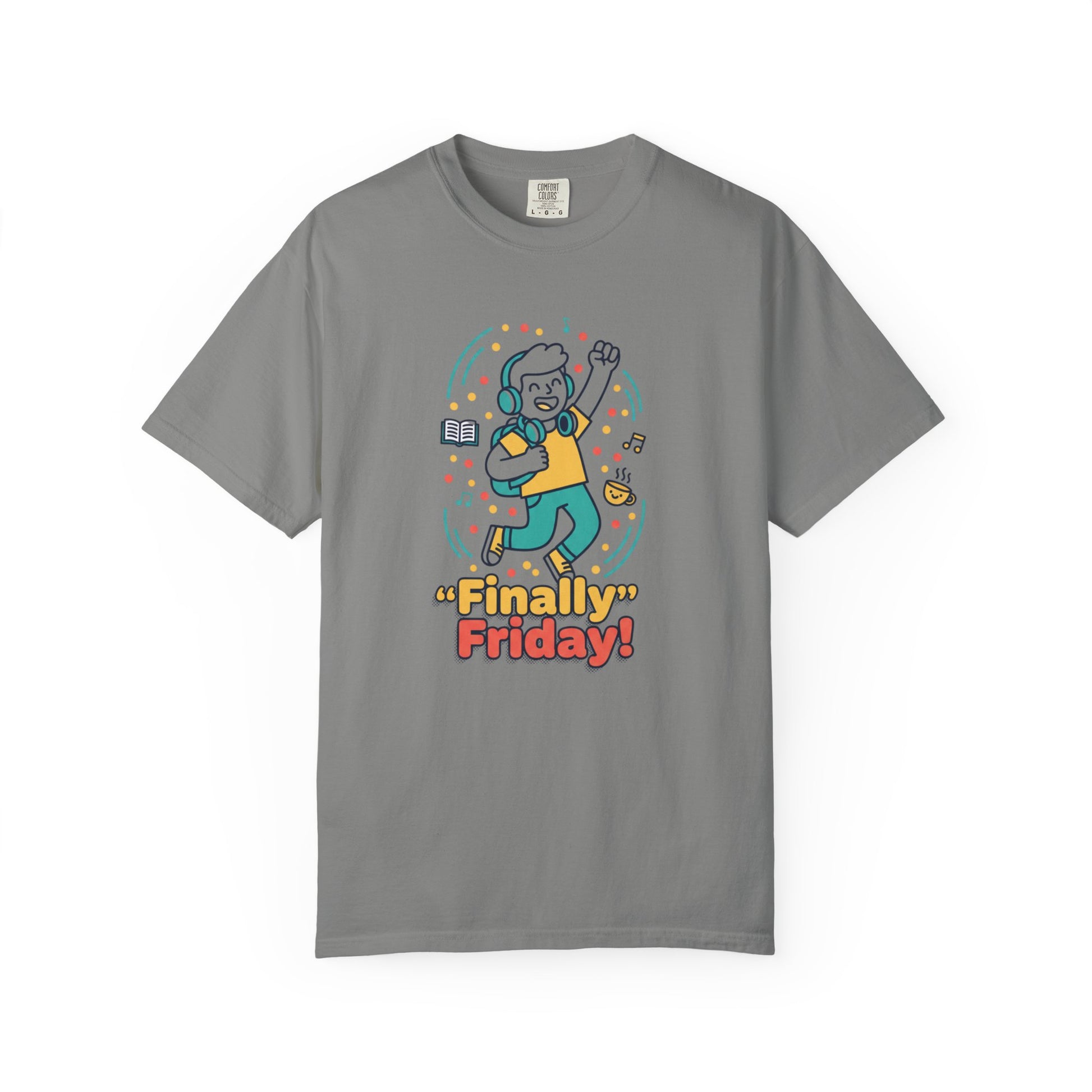 This heavyweight, garment-dyed tee brings a light-hearted, celebratory vibe to casual weekends and after-work hangs. The relaxed fit drapes comfortably while the soft, post-dye finish gives the fabric a worn-in, cozy feel. Front artwork shows a cheerful character mid-dance with confetti and the playful headline “Finally Friday!” — a small, wearable moment of relief that resonates after a long week. Wear it to low-key meetups, Friday team outings, or lazy weekend coffee runs; the sewn-in label and sturdy double-needle stitching promise durability through repeated wears and washes. Available in many colors and sizes, it pairs easily with denim or joggers and keeps its shape thanks to pre-shrunk, ring-spun cotton.