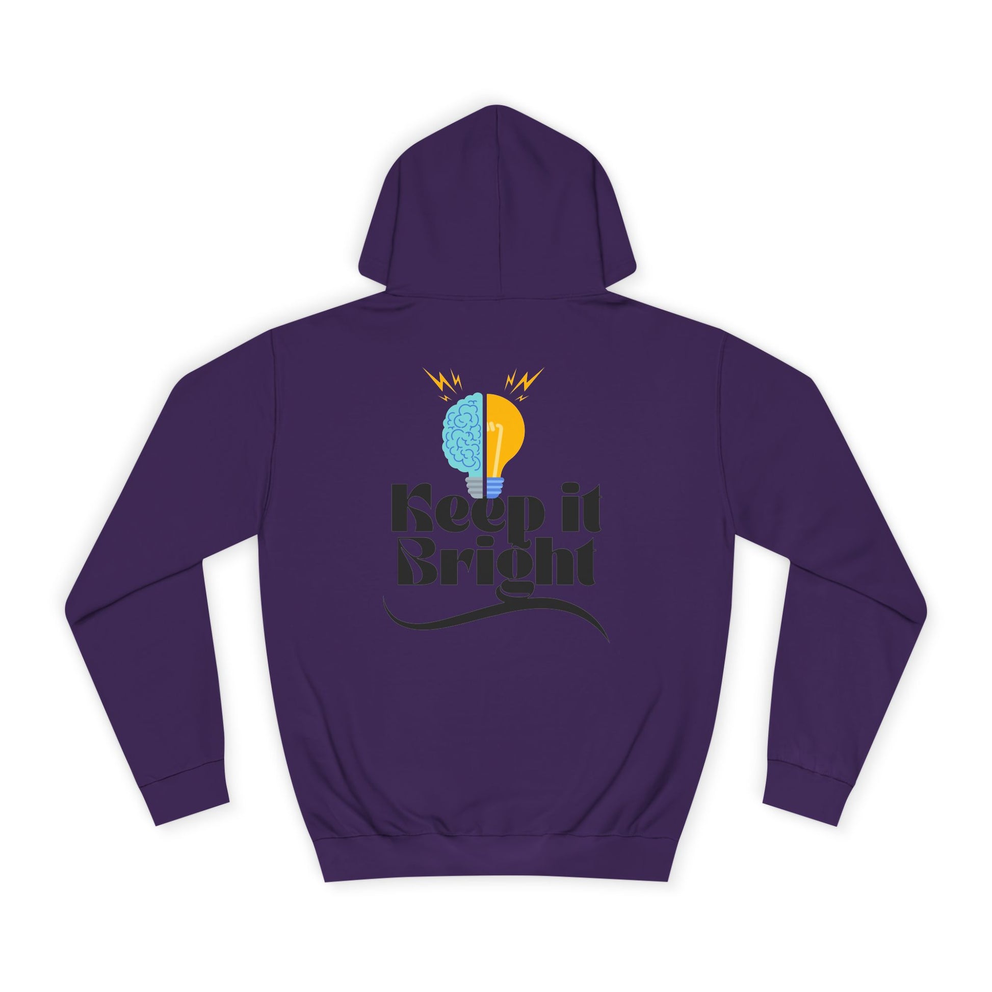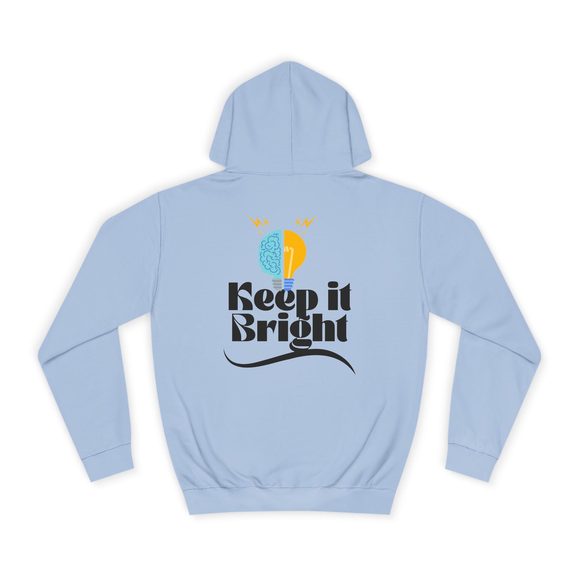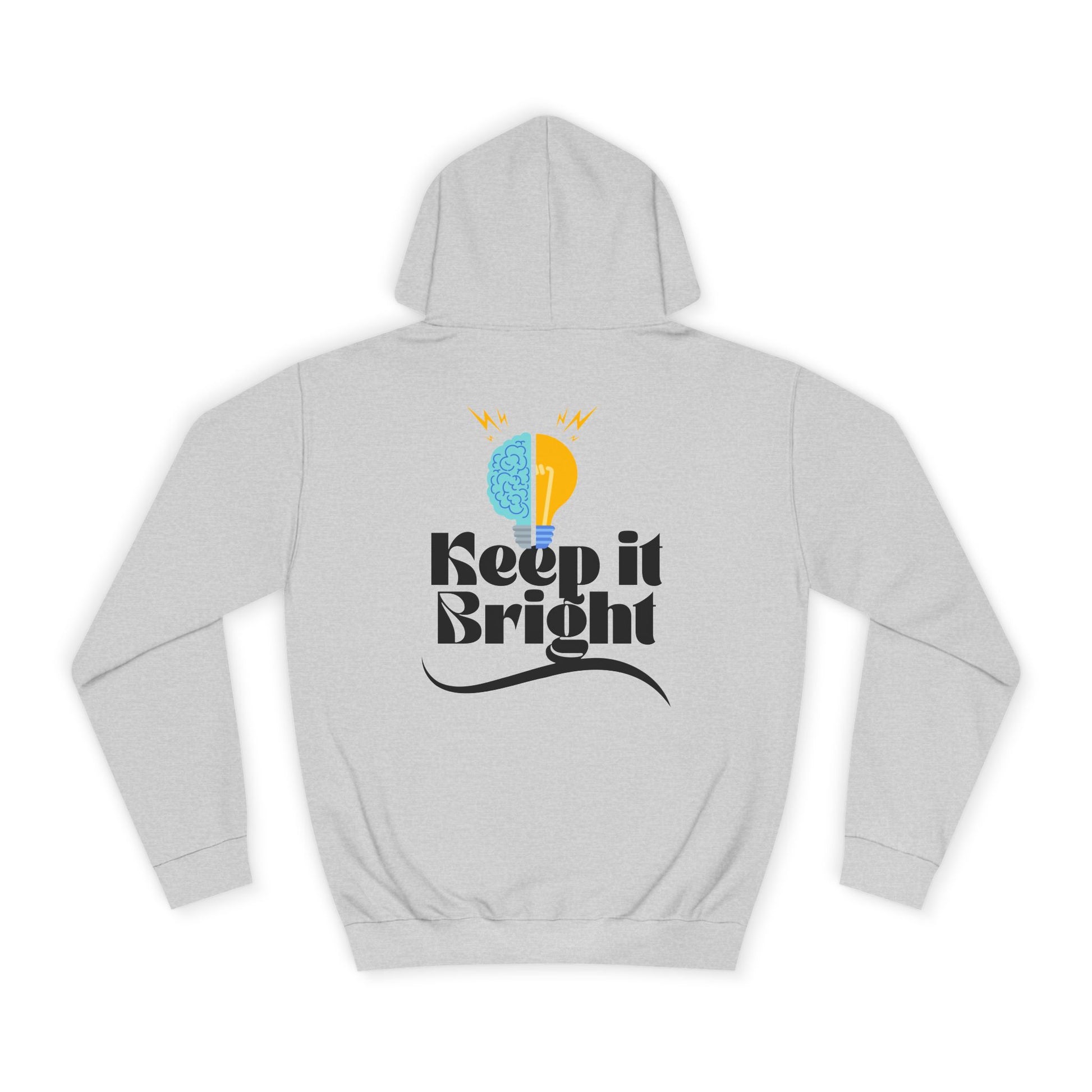 This roomy hoodie carries a calm, optimistic energy—soft to the touch with a loose, easy silhouette that invites layering and long evenings. The back features a cheerful graphic: a half-brain, half-sun motif above the phrase “Keep it Bright,” a small reminder to choose curiosity and light. Wear it on cool walks, in late-night study sessions, or when you need a quiet boost. The kangaroo pocket warms your hands; the adjustable hood locks in comfort. Ethically made and built to hold shape, it becomes a familiar, reassuring layer you reach for again and again.