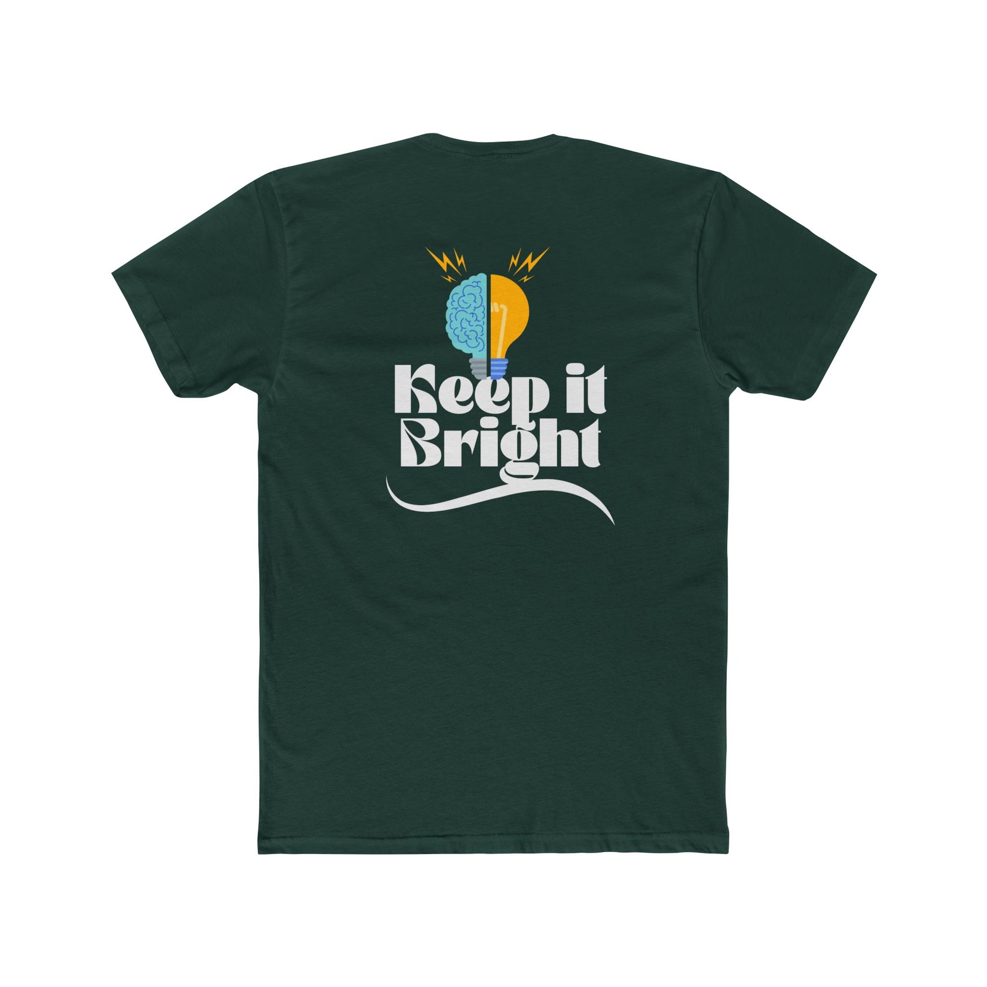 This lightweight cotton crew tee brings a little optimism to everyday wear. The soft, classic-fit silhouette sits cleanly at the shoulders and chest, while a bold back print — a half-brain/half-sun icon with retro-inspired lettering that reads “Keep it Bright” — turns the shirt into a small manifesto. Wear it on morning walks, at community meetups, or during creative studio days to carry a subtle reminder to stay curious and sunlit. The breathable 4.3 oz fabric layers comfortably under jackets or stands on its own when the weather allows. Sleeve prints applied with Direct-to-Film give crisp, enduring color without sacrificing the tee’s soft hand. Thoughtful construction details like a ribbed knit collar, shoulder tape, and side seams keep shape and fit over repeated wear and washes.