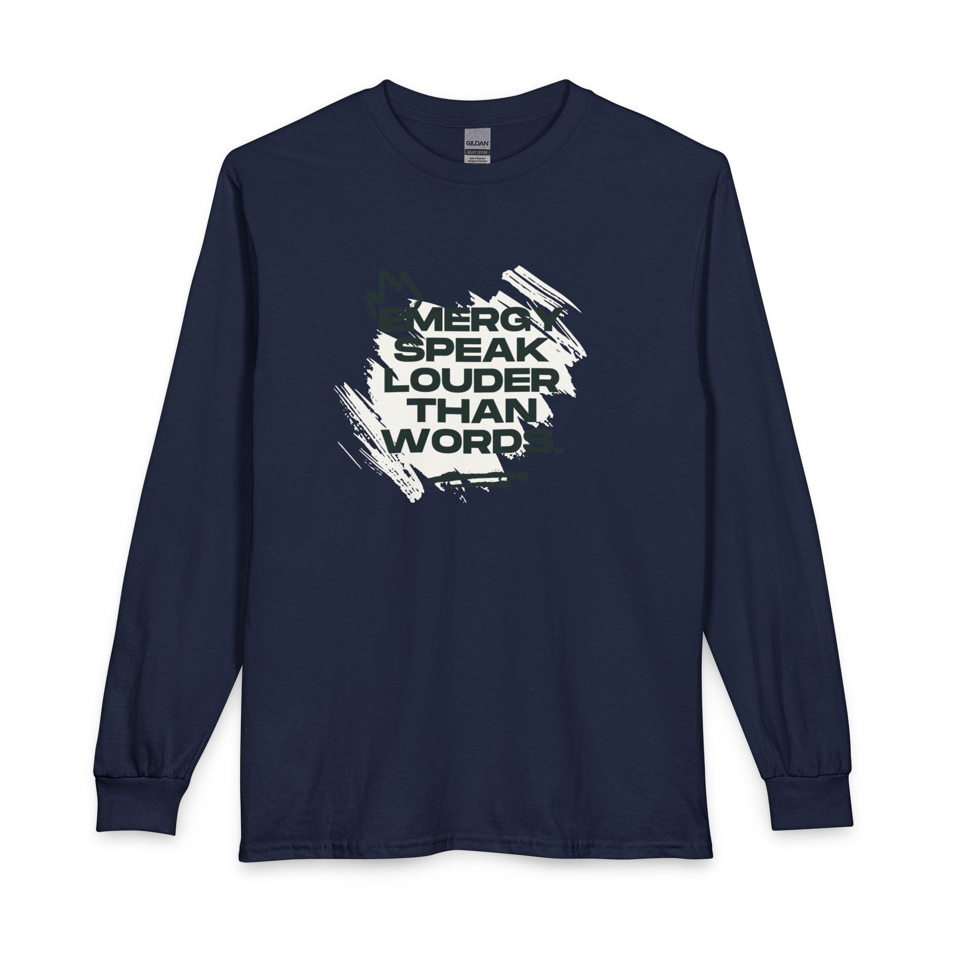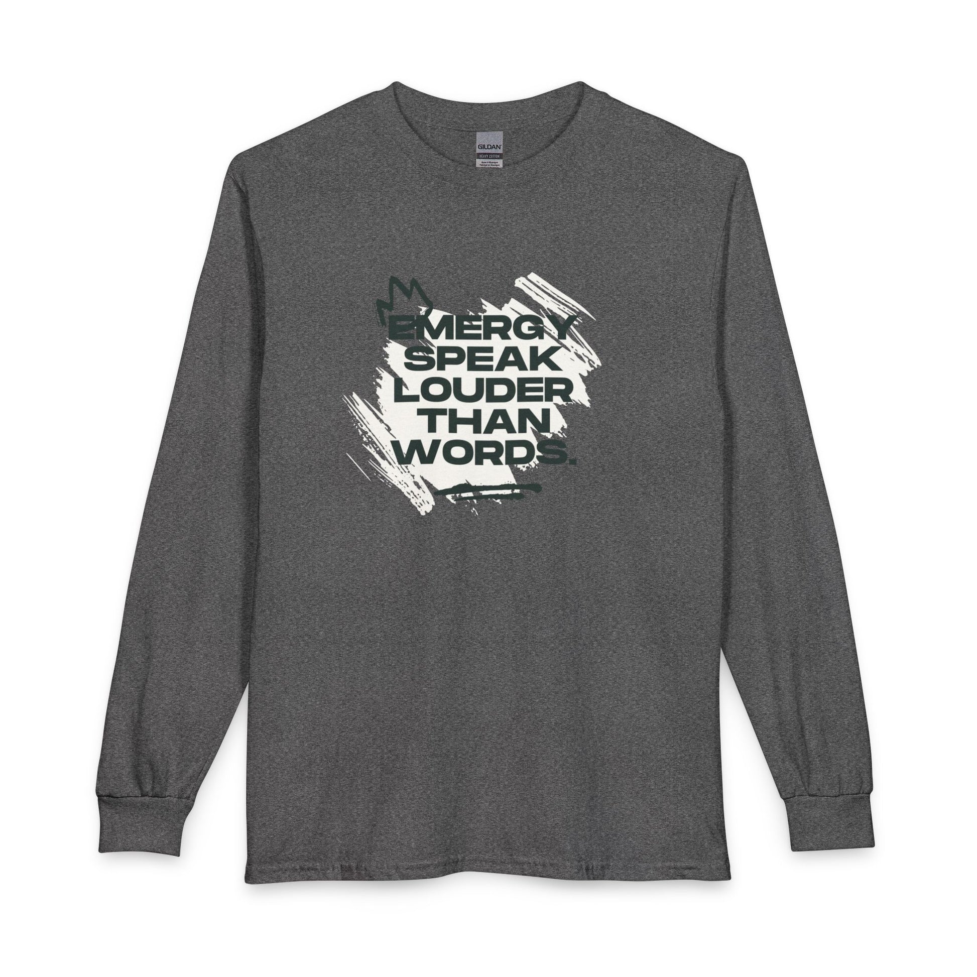 Long Sleeve Tee — "Energy Speak Louder Than Words" Graphic