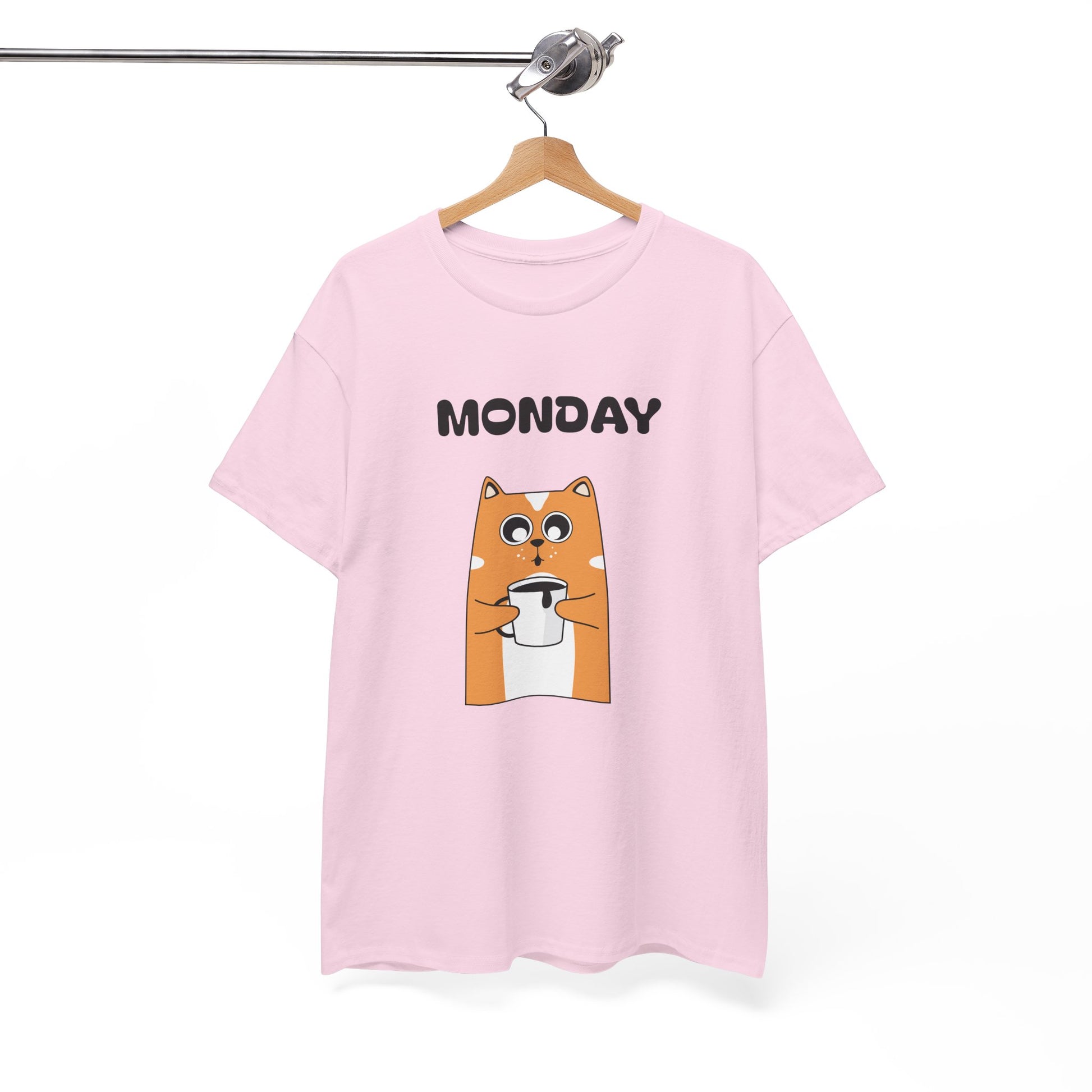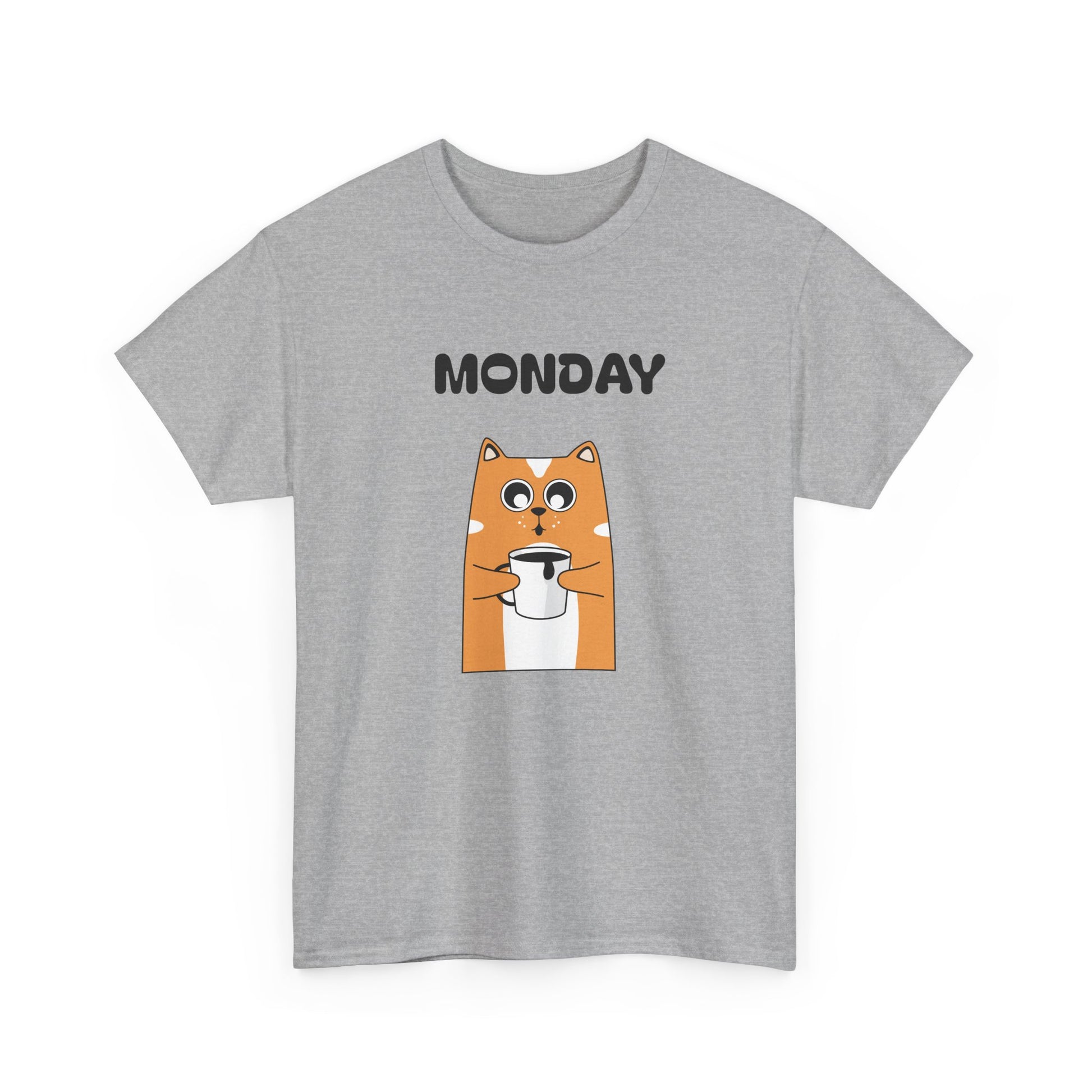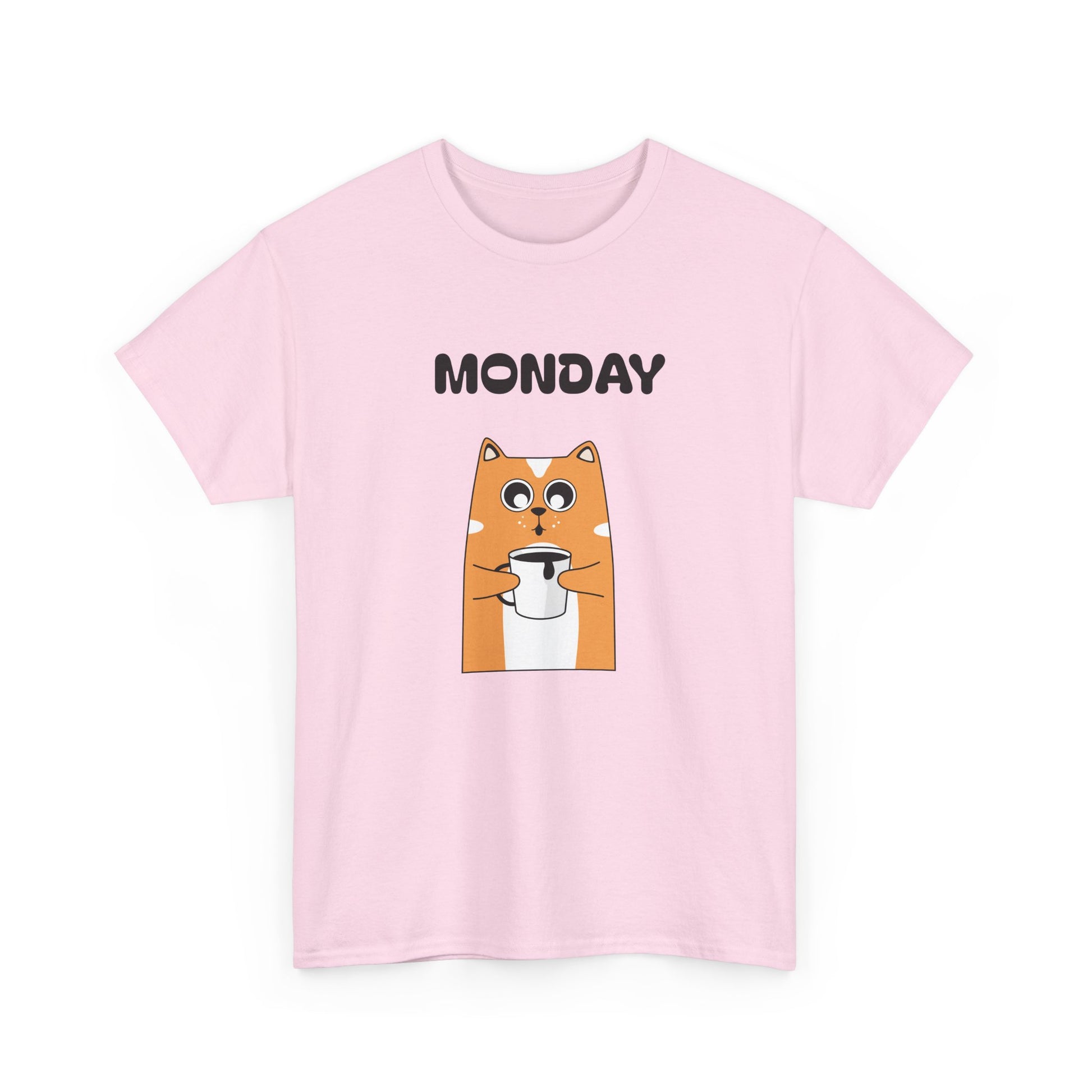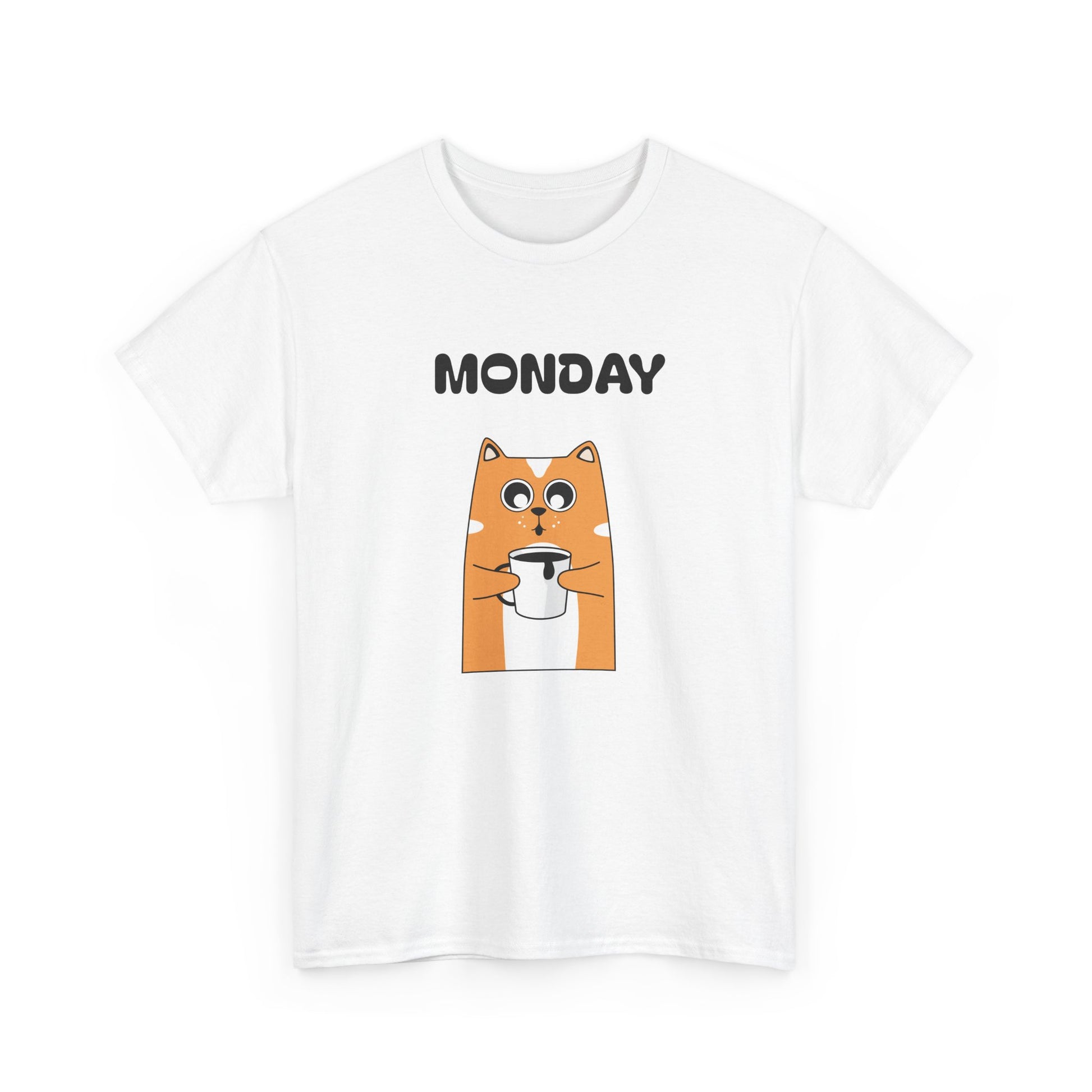 A soft, everyday tee that brings a wink to slow Monday mornings. The front shows a wide-eyed, orange dog clutching a coffee cup beneath bold “MONDAY DAY” text—small humor for people who run on caffeine and quiet sarcasm. The medium-weight 100% cotton fabric holds vibrant DTG prints cleanly, while ribbed collar and shoulder twill keep shape after repeated wear. Wear it with worn jeans for a laid-back coffee-run, toss it on under a cardigan for casual workdays, or keep it in the rotation for weekend errands that start later than planned. The simple white canvas makes the artwork pop, and the tear-away label keeps things comfortable against the skin.