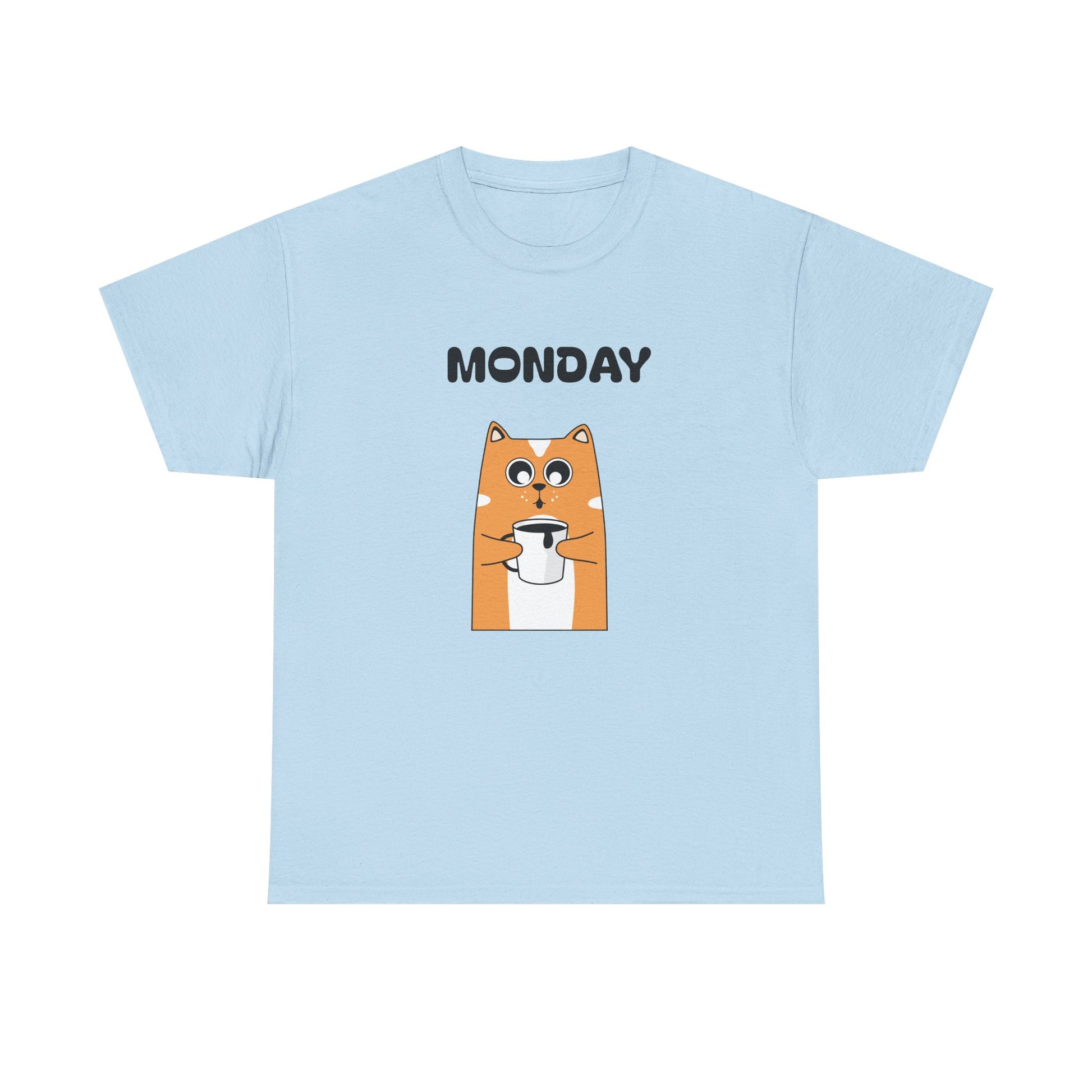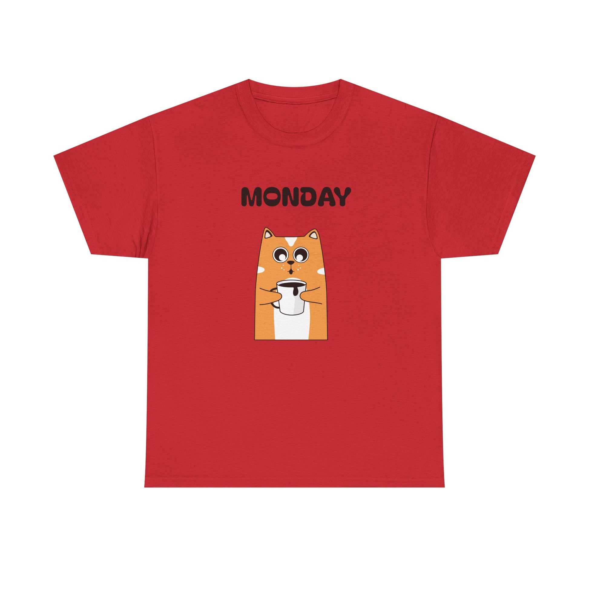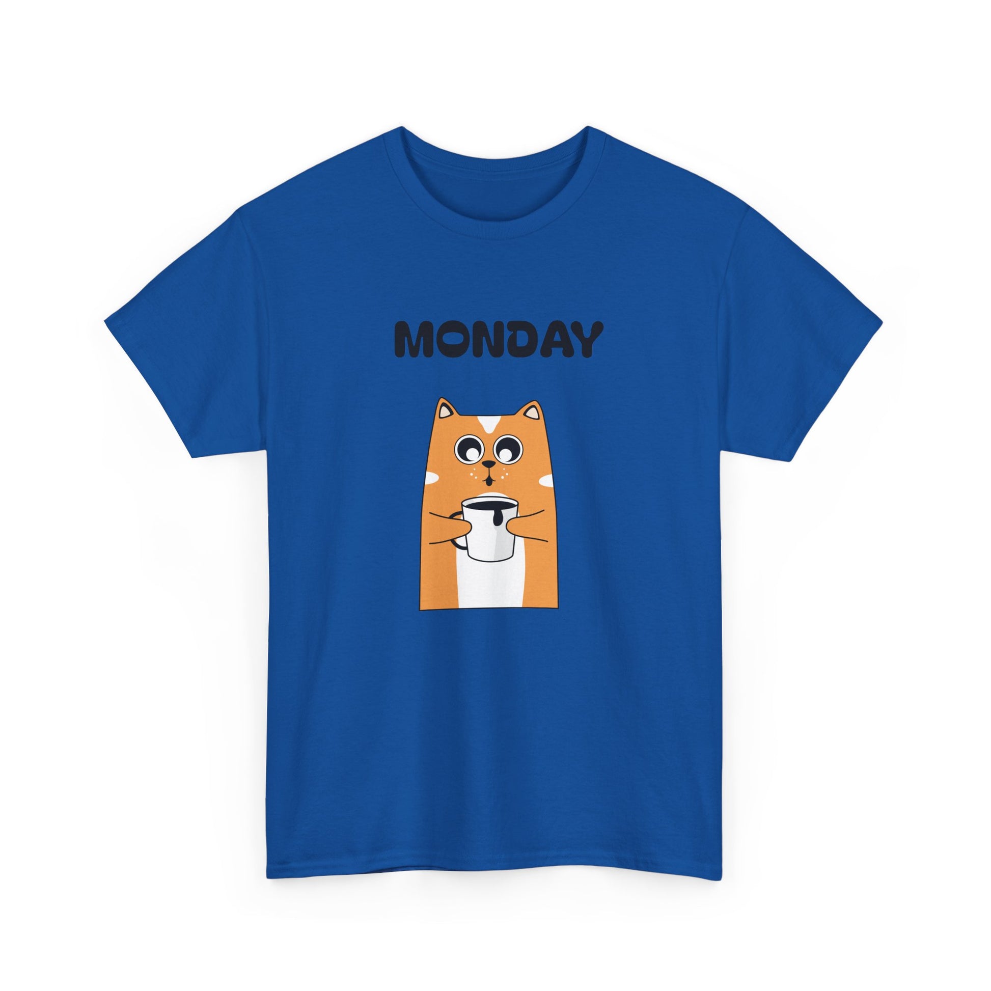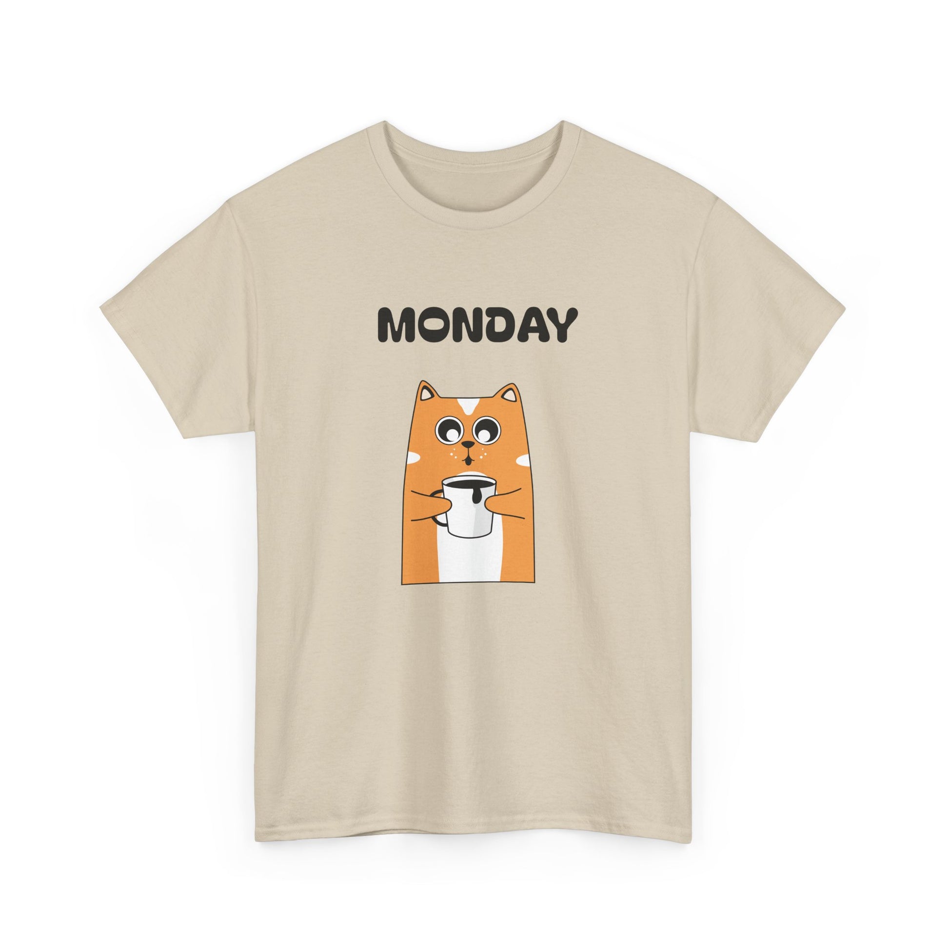 A soft, everyday tee that brings a wink to slow Monday mornings. The front shows a wide-eyed, orange dog clutching a coffee cup beneath bold “MONDAY DAY” text—small humor for people who run on caffeine and quiet sarcasm. The medium-weight 100% cotton fabric holds vibrant DTG prints cleanly, while ribbed collar and shoulder twill keep shape after repeated wear. Wear it with worn jeans for a laid-back coffee-run, toss it on under a cardigan for casual workdays, or keep it in the rotation for weekend errands that start later than planned. The simple white canvas makes the artwork pop, and the tear-away label keeps things comfortable against the skin.